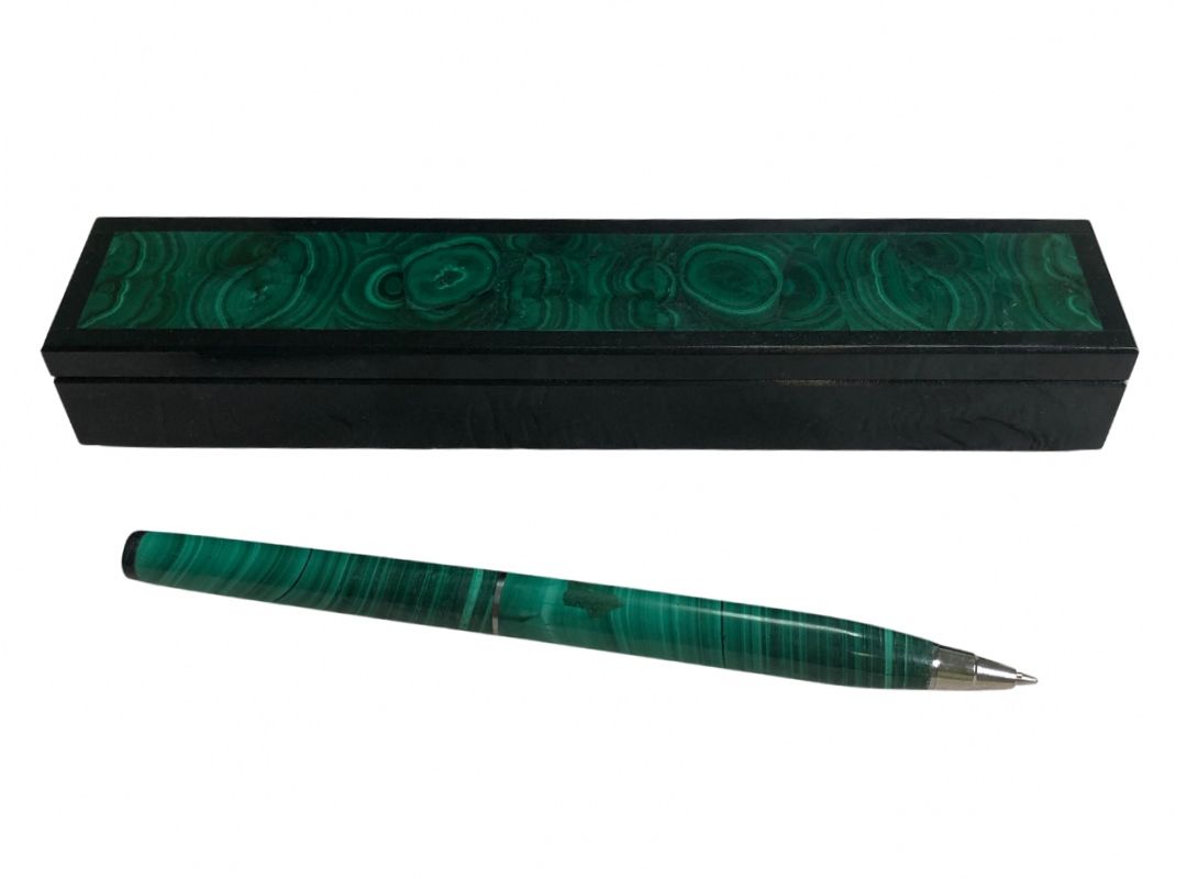 Ручка из камня малахит в футляре