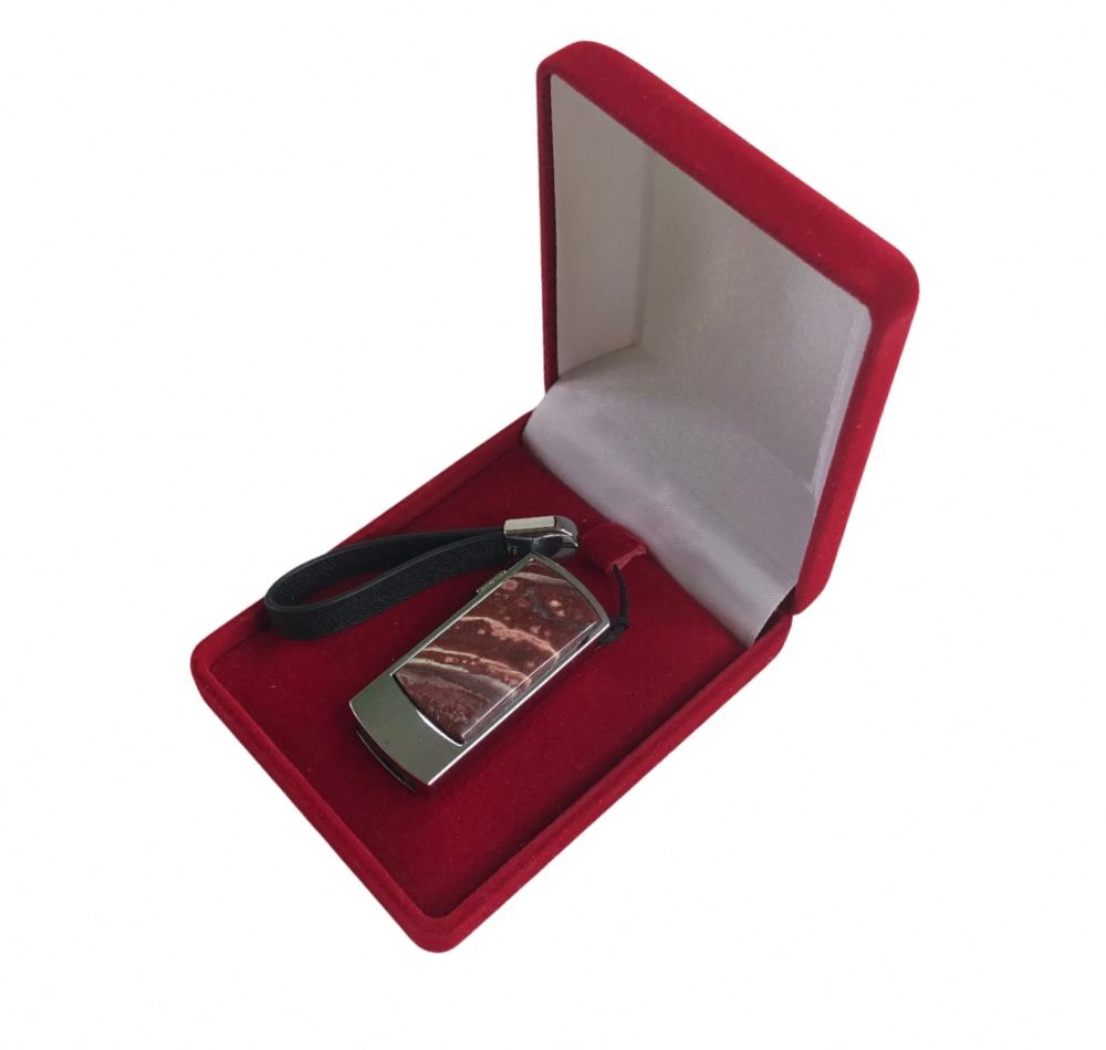 Флешка с накладкой из яшмы - отличный вариант для тех, кто ищет оригинальный подарок, сочетающий в себе практичность современных технологий и природную красоту натуральных камней.