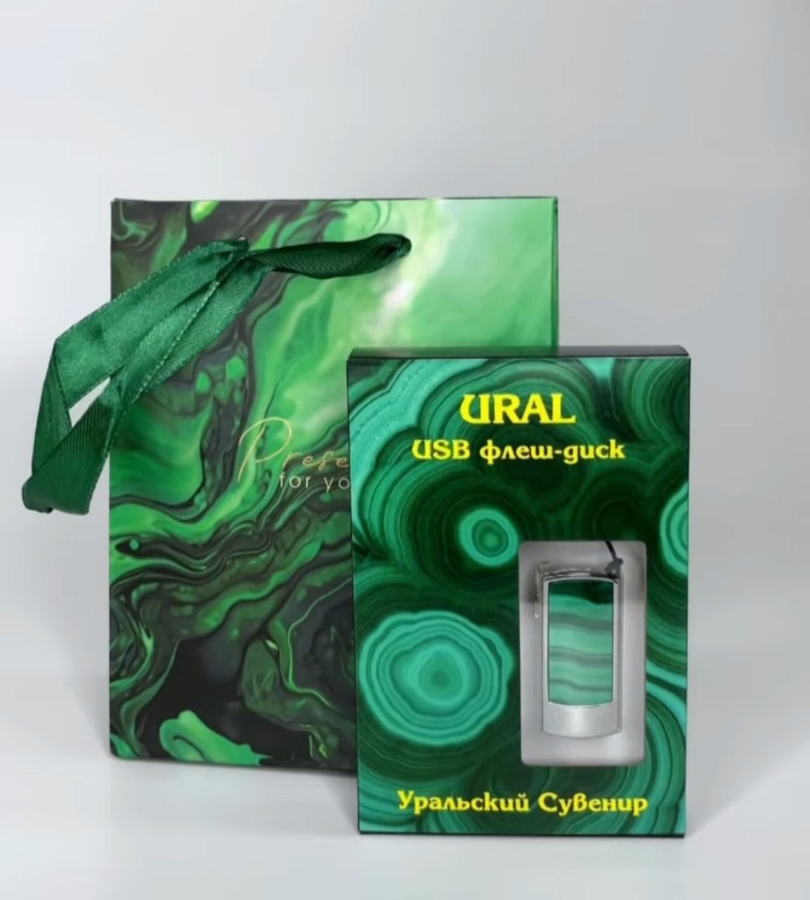 Флешка с накладкой из малахита - отличный вариант для тех, кто ищет оригинальный подарок, сочетающий в себе практичность современных технологий и природную красоту натуральных камней.