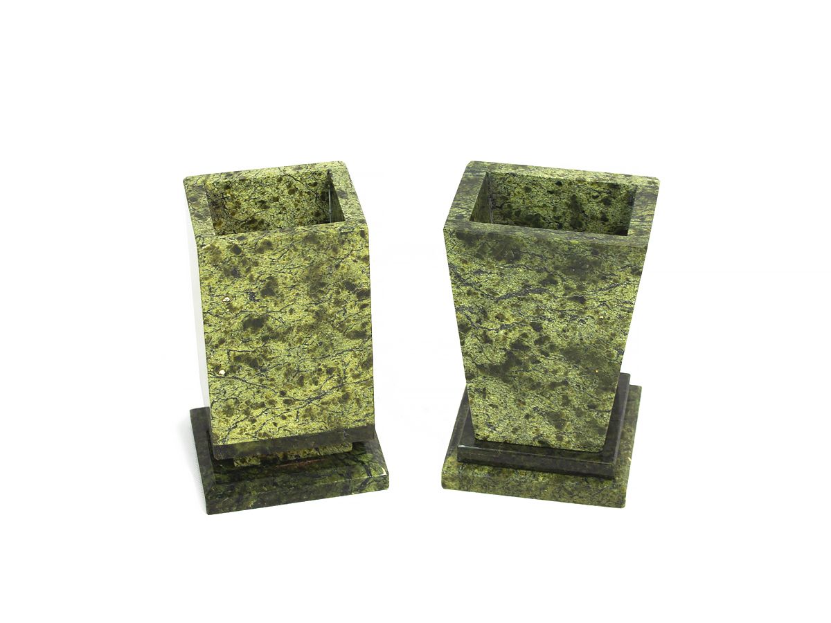 Карандашницы из камня змеевик разных видов.
