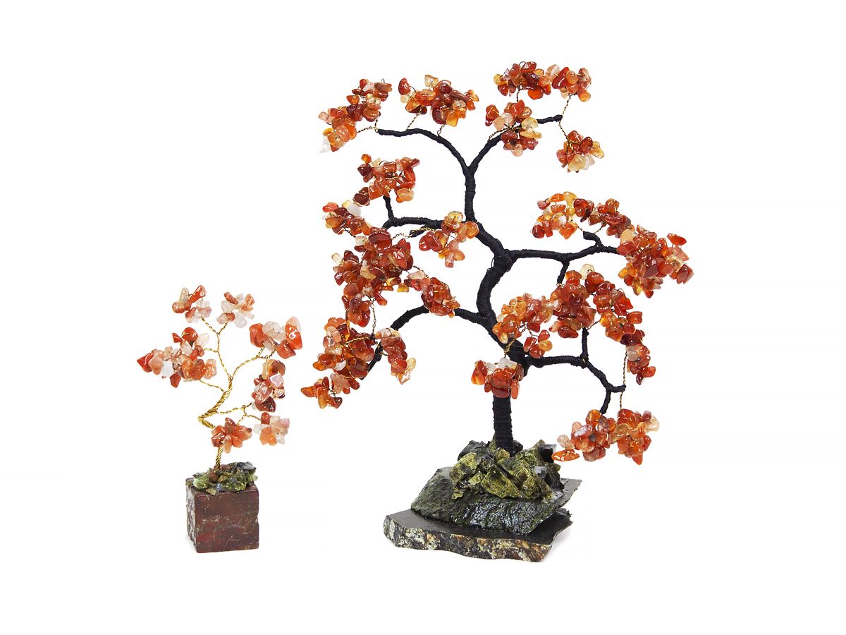В ассортименте представлены деревья из натурального сердолика различных форм и размеров.
