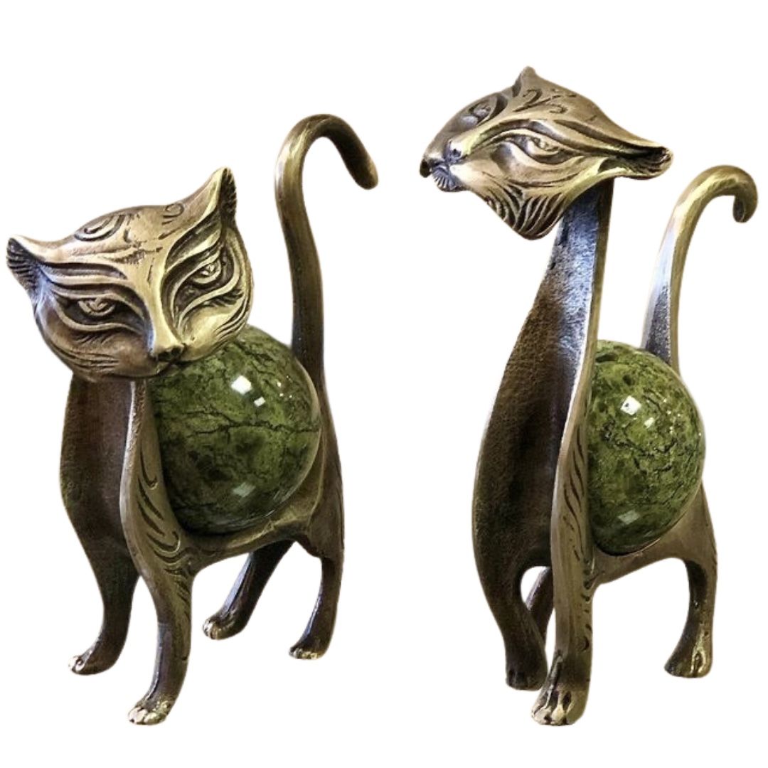 Кот и кошка, змеевик/бронза
