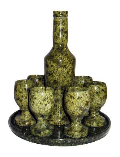 Набор изготовлен из натурального уральского камня змеевик.
