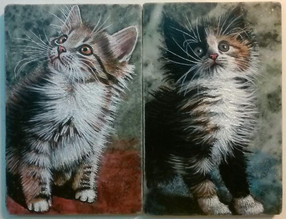 Панно на камне змеевик "Домашние любимцы"