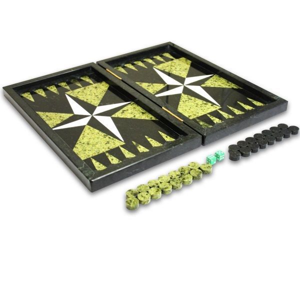 Нарды из натурального камня змеевик разных оттенков и мрамора.