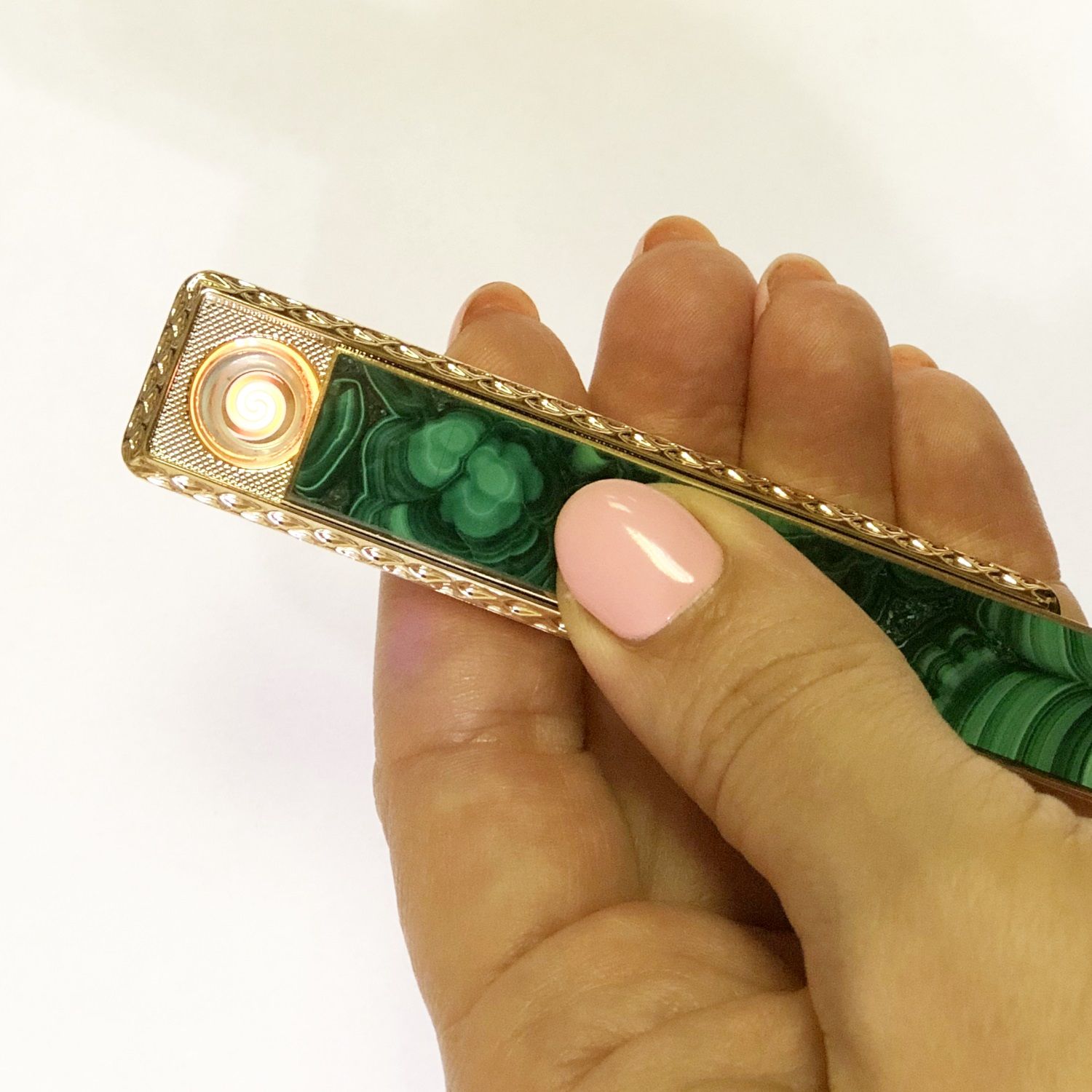 В ассортименте представлены электронные зажигалки с накладками из разных камней