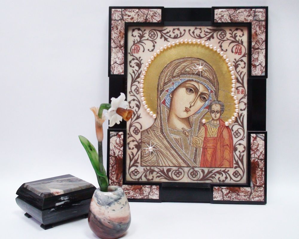 Иконы с каменной росписью, разные лики