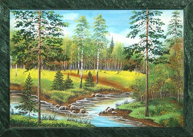 Подложка изготавливается из мрамора, рама из уральского змеевика.