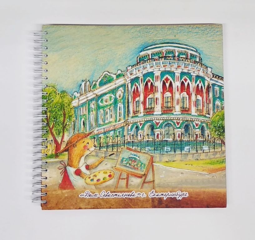 Красивый яркий скетчбук для рисования карандашом и акварелью с изображением одного из главных символов Екатеринбурга - дома Севастьянова.