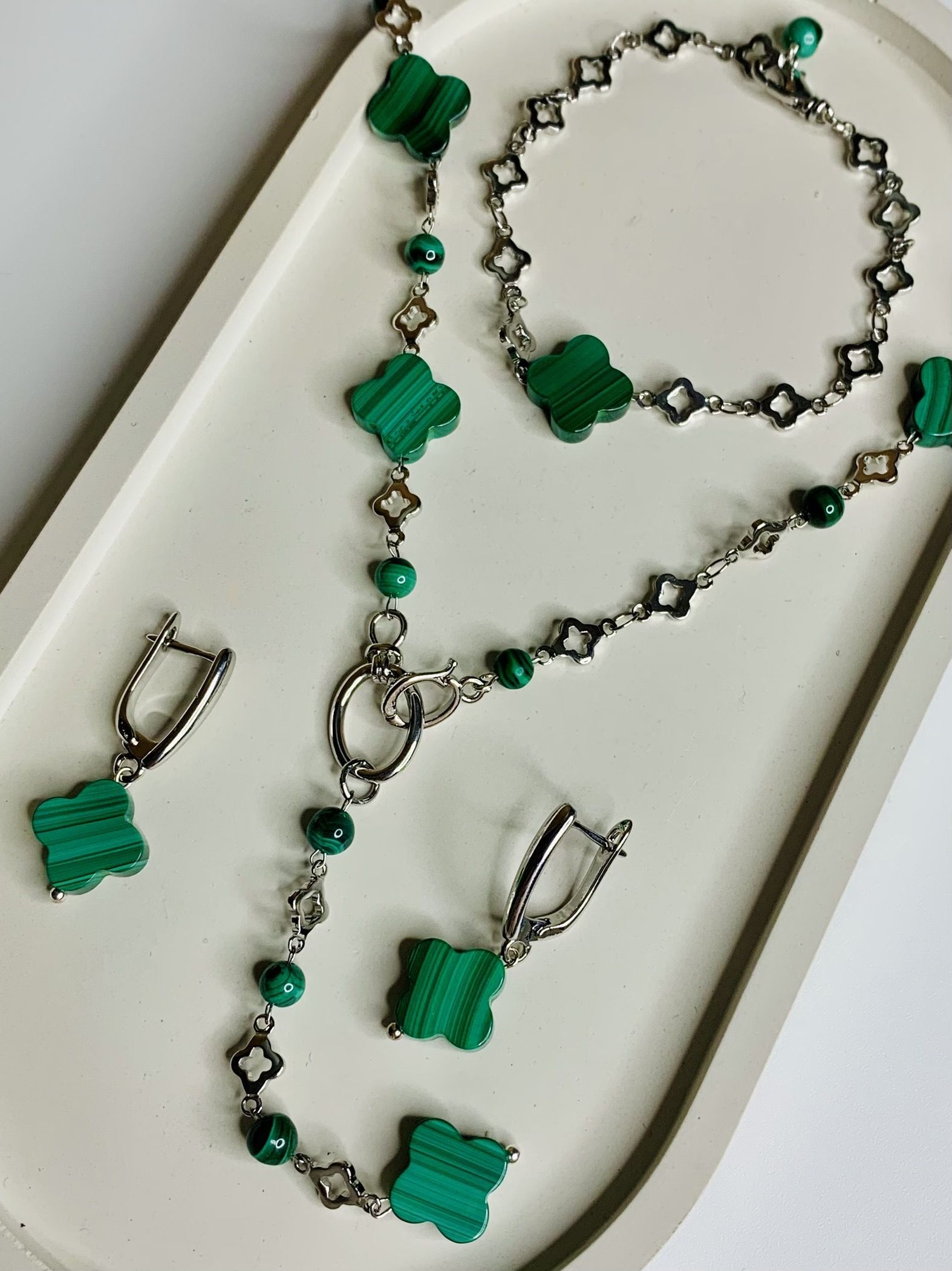 Материалы: малахит, качественная ювелирная фурнитура под серебро.