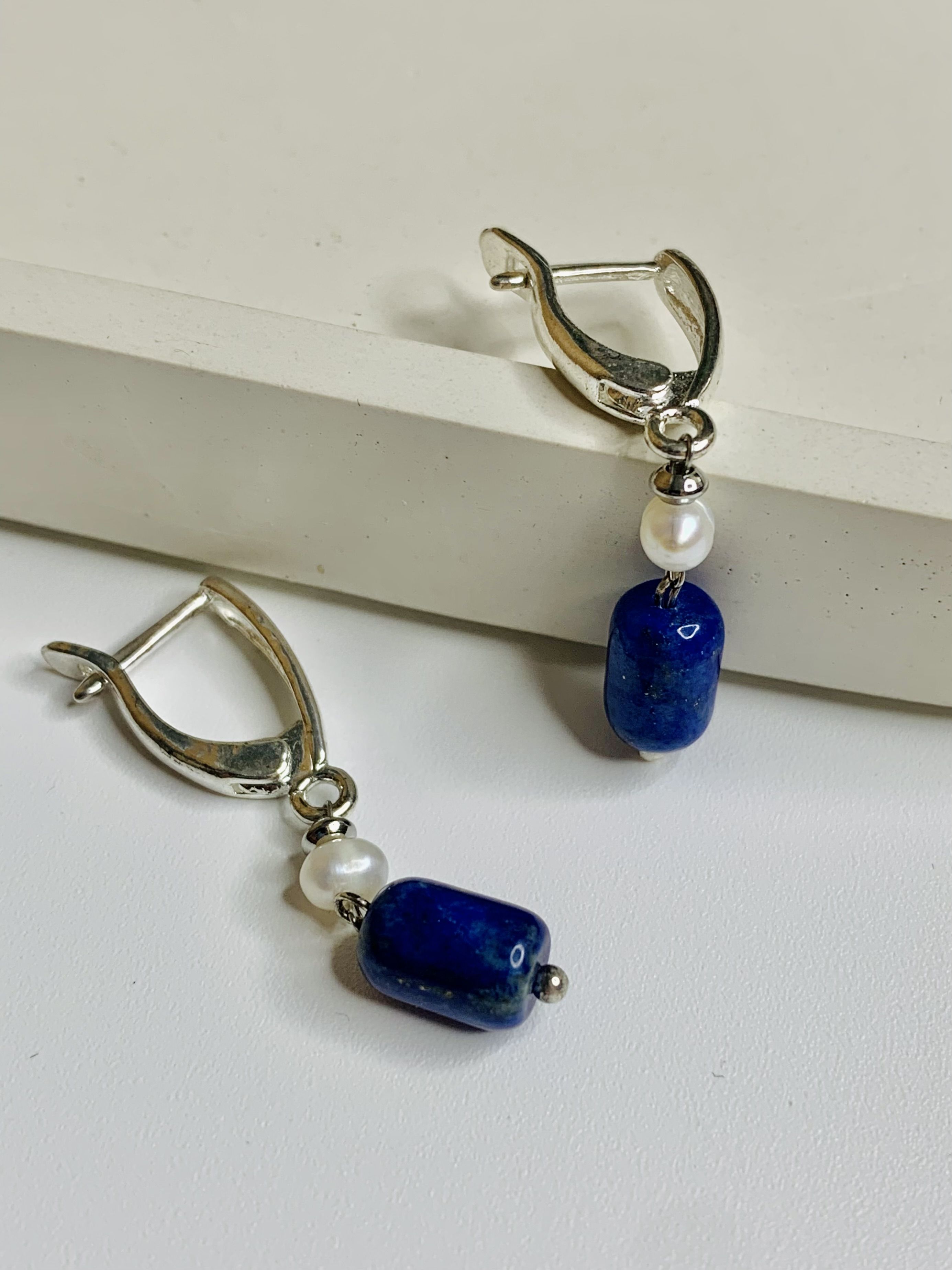 Серьги с жемчугом и лазуритом