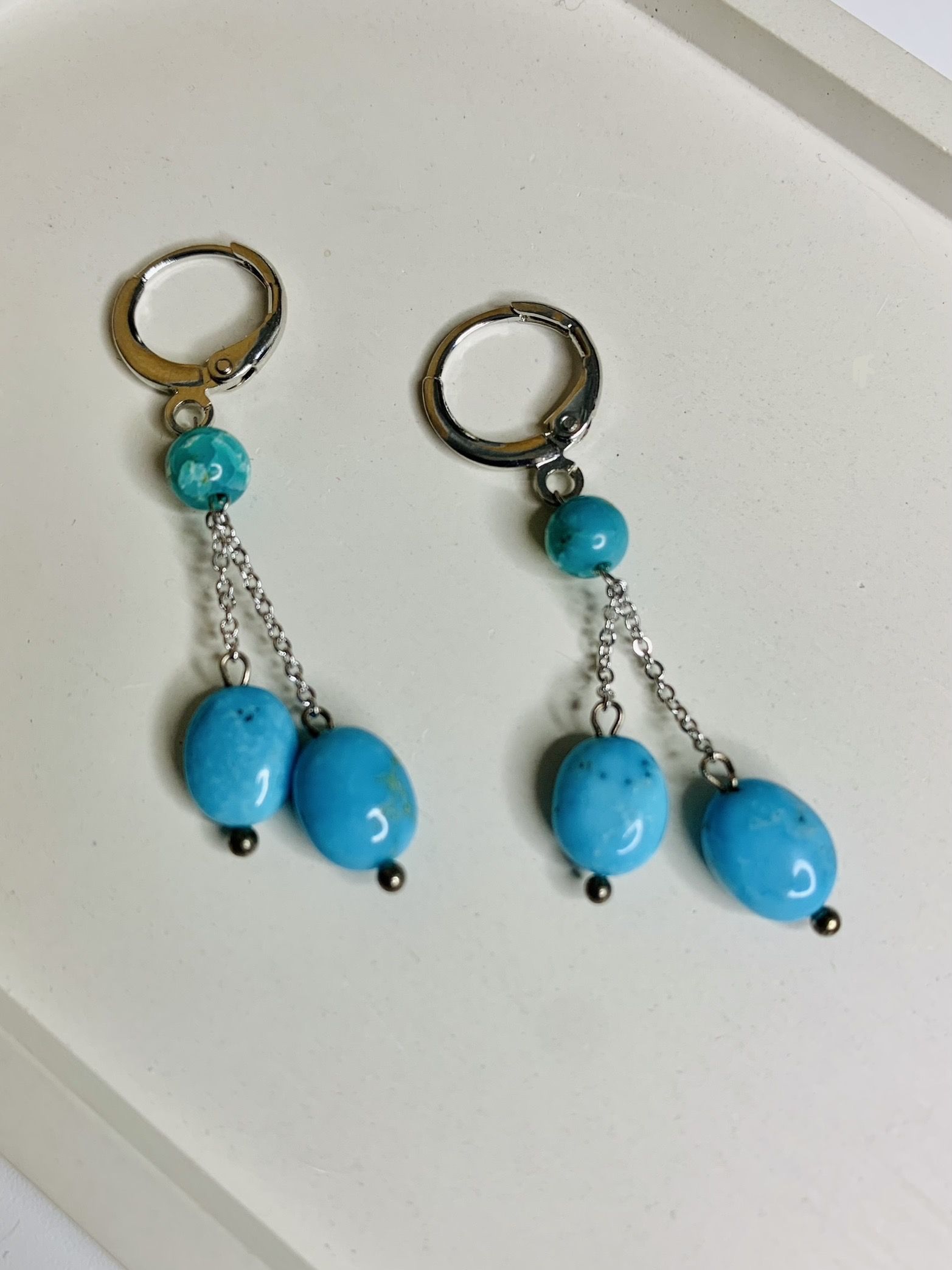 Серьги удлиненные с бирюзой