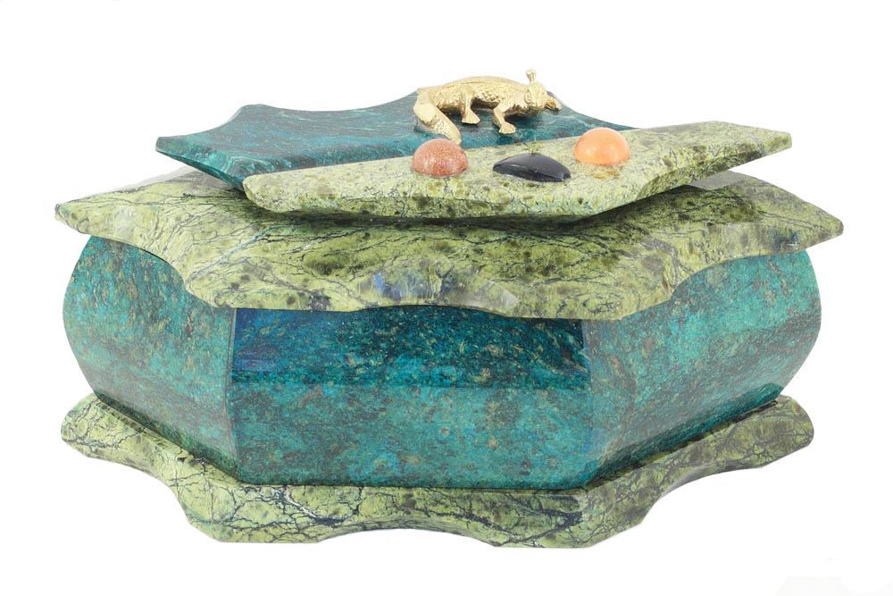 Шкатулка большая из змеевика, разные формы