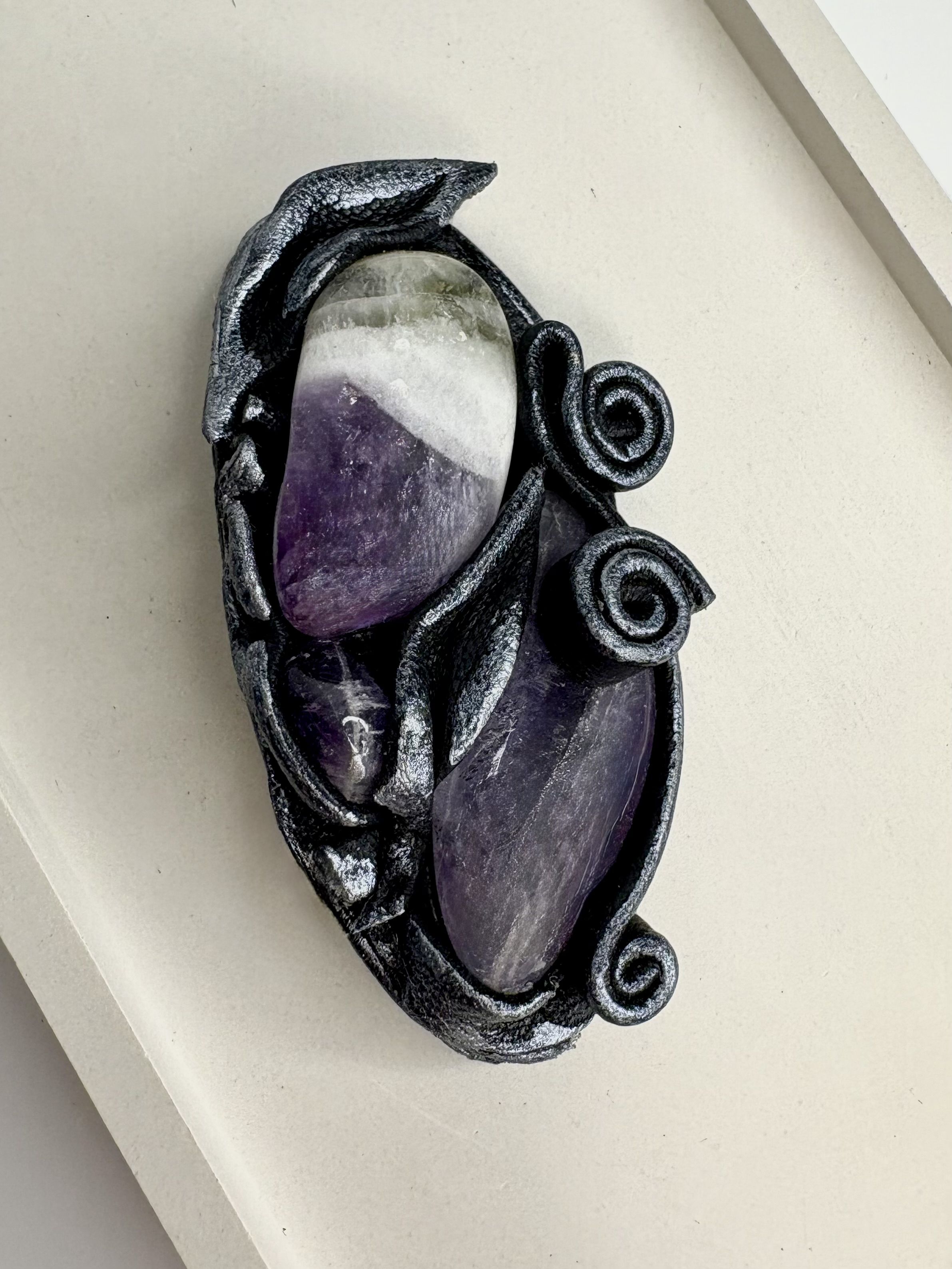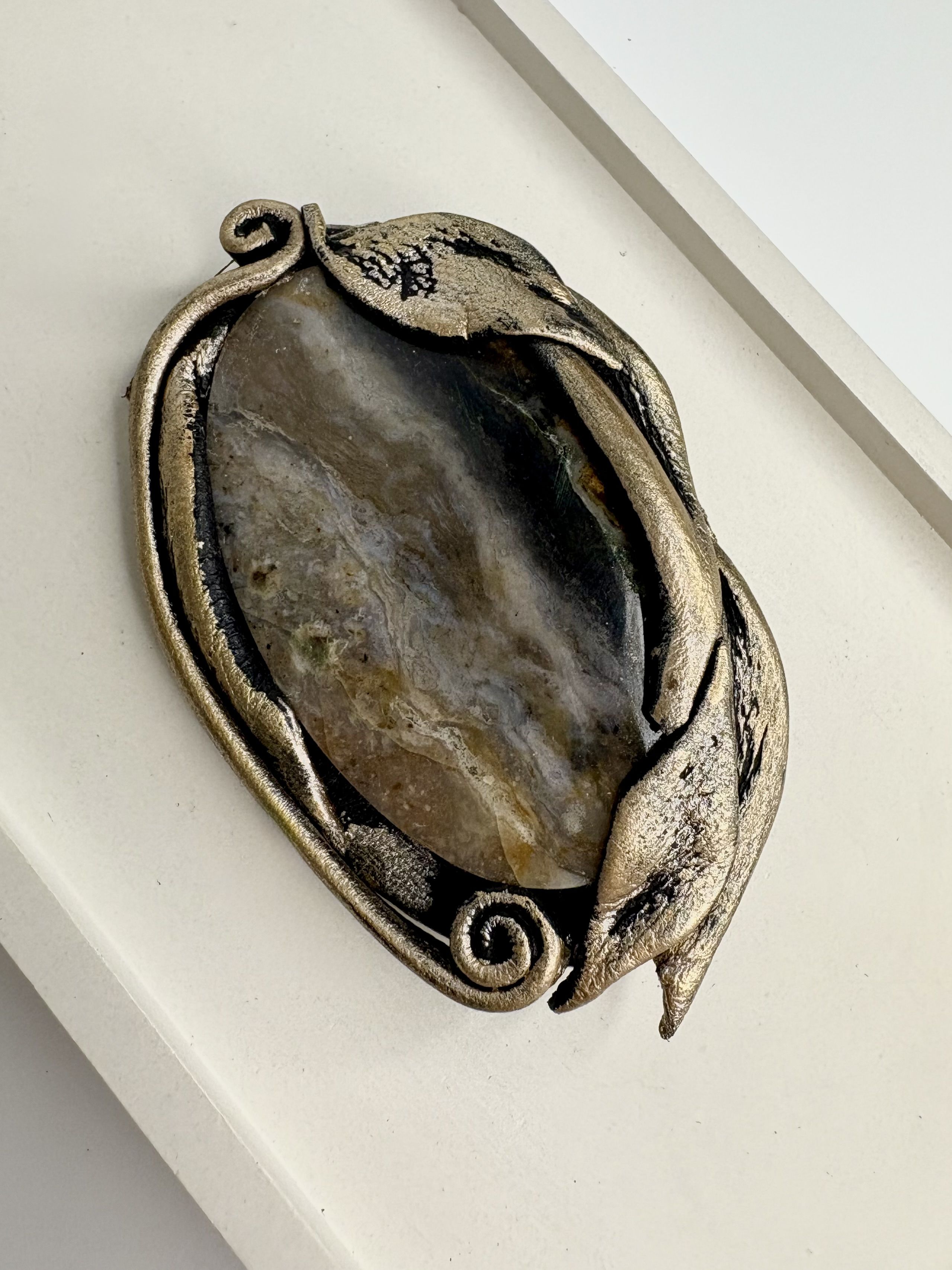 Броши из натуральных камней и кожи