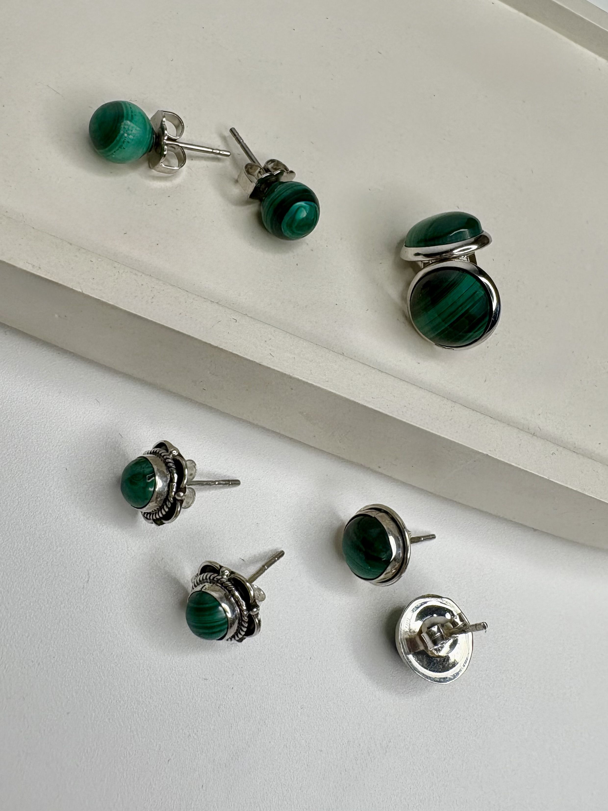 Изящные стильные пуссеты с натуральным малахитом для любительниц уральской эстетики .